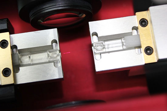 - Design for direct, non-contact diameter of single small and opaque fibre.